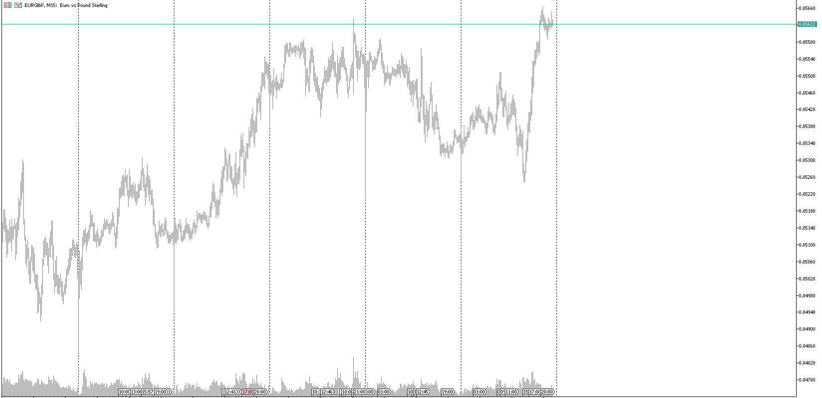 особый случай - EURGBP давно идёт вверх, все цены внизу и терминал отказывается смещать график вниз. "хозяин, там сверху нет ничего и смотреть нечего"