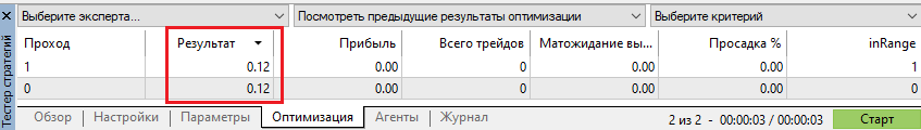 Теперь запускаем Оптимизацию по кастомному критерию, задавая нужное количество локальных Агентов и проходов.