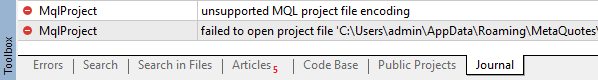 Эх, скрипт бы какой-нибудь, который бы детектил сломанные mqh файлы и лечил бы их (убрать "плохие символы" если есть + сменить кодировку)