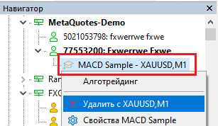 После чего в Терминале не будет запущенного советника, но упоминание о нем будет присутствовать в месте, как показано на скрине.