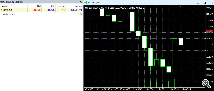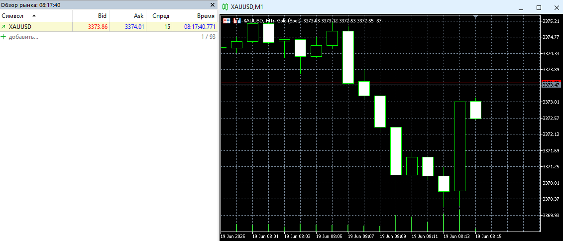 На скрине видно, что не только не строятся бары, но и Bid/Ask-линии на чарте не соответствуют (маркапа нет) Обзору рынка.