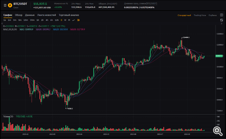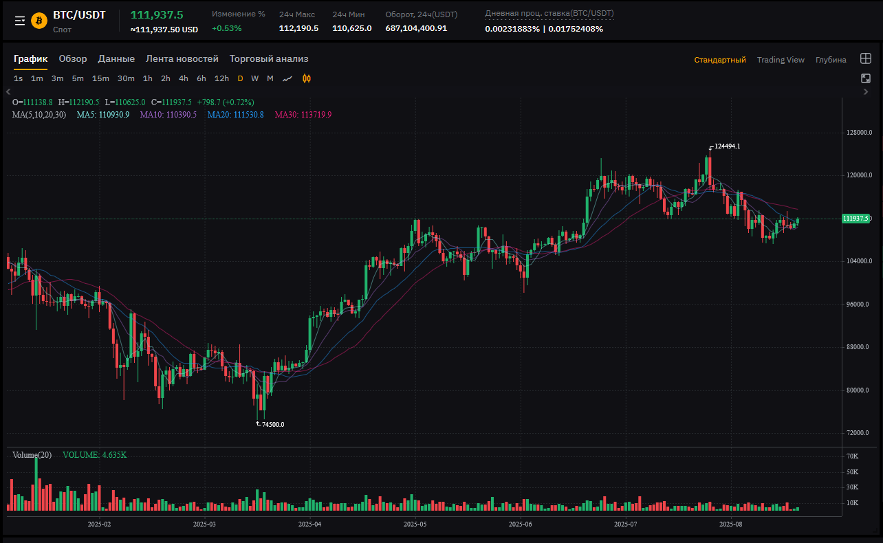 Цена: 111,937.5 USDT (рост +0.72%, попытка роста в рамках бокового движения).