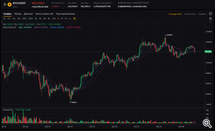 Текущая цена: 112,750.2 USDT (снижение -2.21%, сильная коррекция).