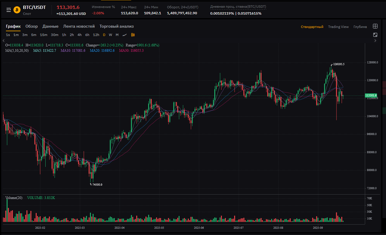Ключевой уровень: MA5 (113,422.7) — определит направление движения