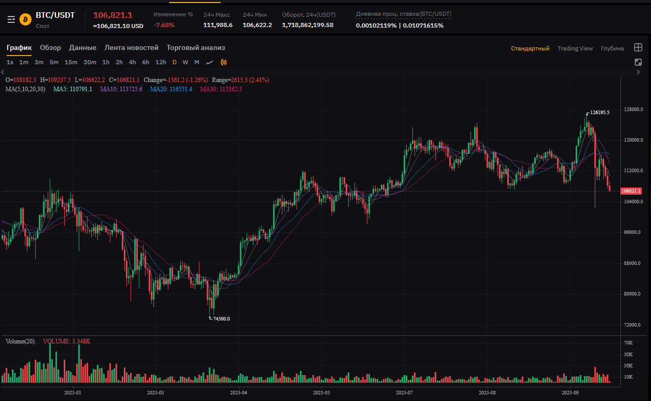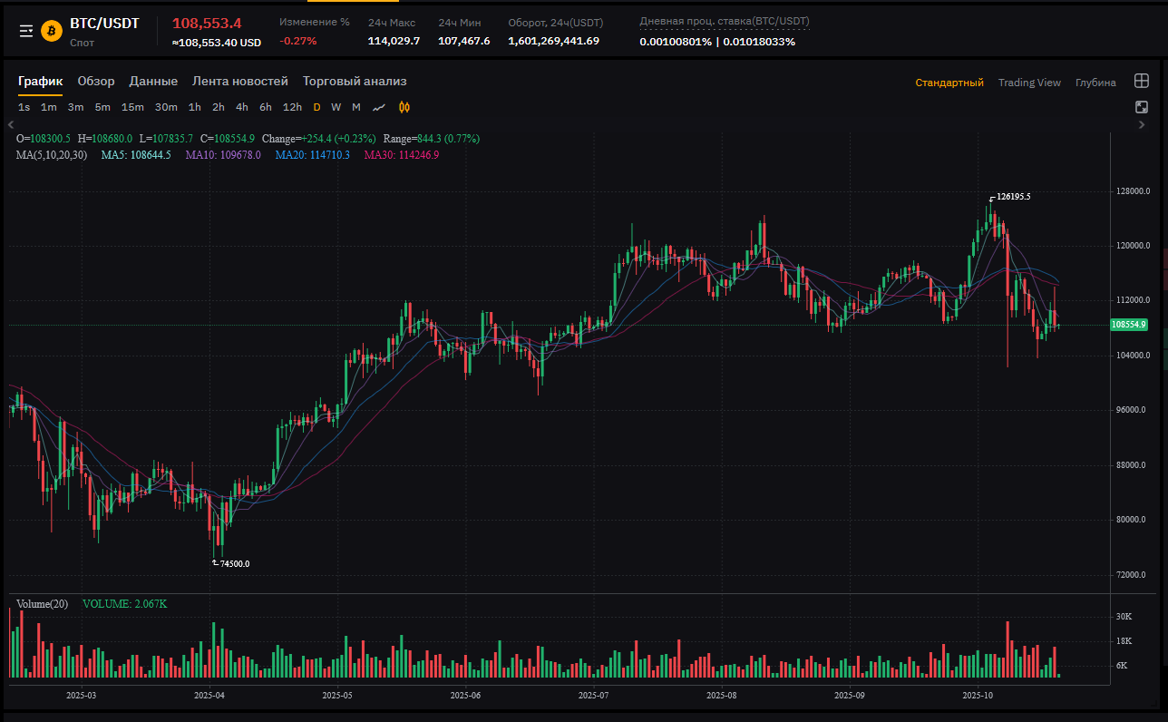 На основе данных на 20.10.2025 по BTC/USDT вот детальный торговый план: