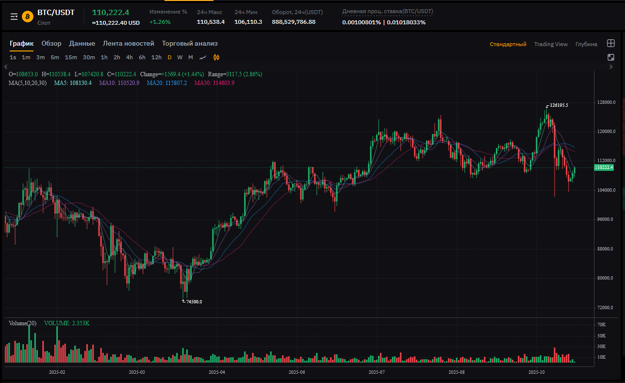 Ключевой уровень: MA10 (110,930.9) — определит силу восходящего импульса