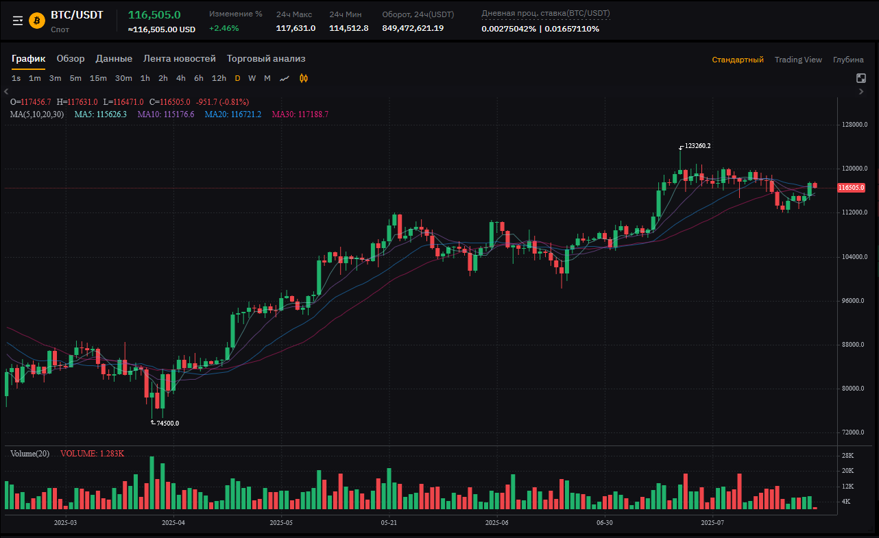 Совет: В условиях низкого объема избегайте крупных позиций. Дождитесь подтверждения движения у ключевых уровней. Для консервативных сделок рассмотрите вход только после пробоя MA30 (117,188.7) или падения к 114,500.0.