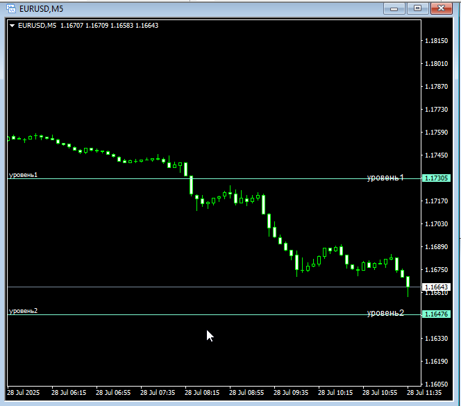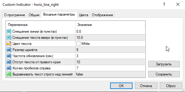 То есть индикатор просто висит на графике - вы рисуете стандартные горизонтальные линии МТ4, но описание отображается уже справа.