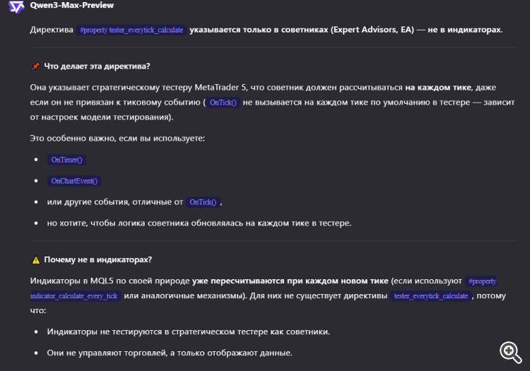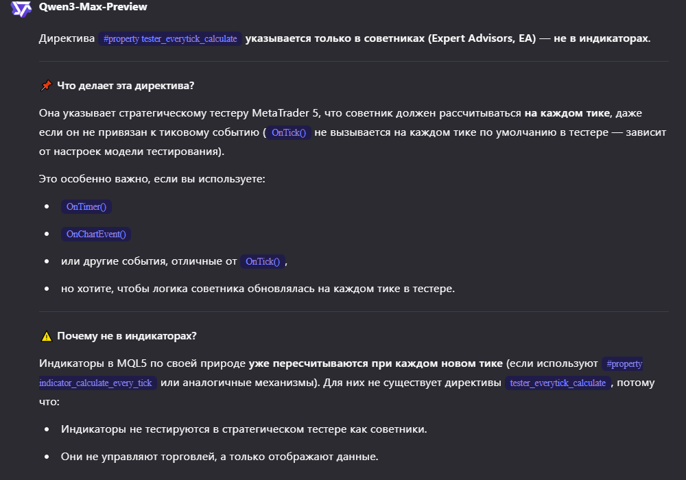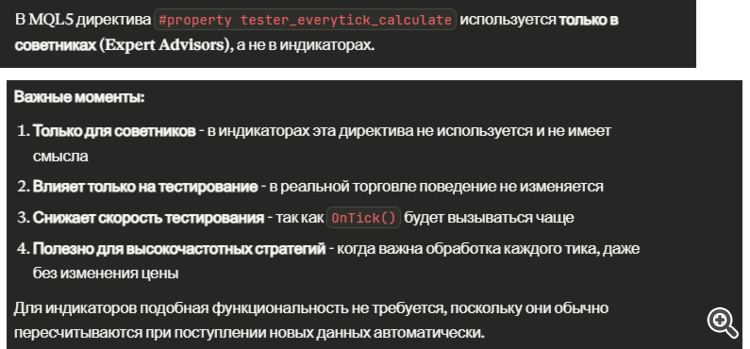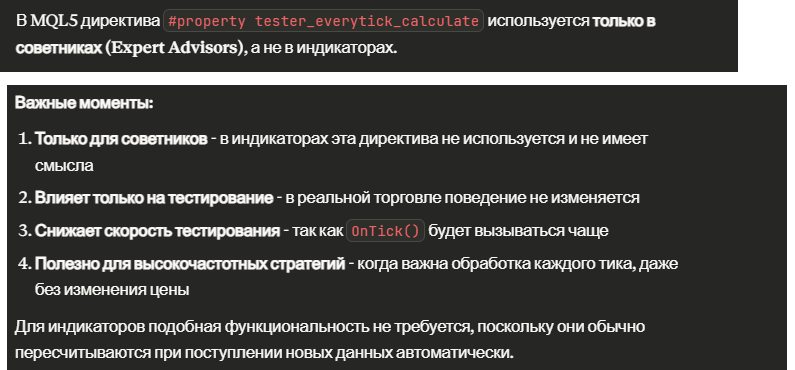 а зададим такой вопрос ИИ: "mql5 #property tester_everytick_calculate, где нужно указывать, в индикаторе или советнике"
