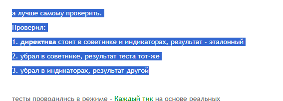 Но вы так и не сказали ничего о том, как вы понимаете эту директиву? «В тестере пересчитывать индикаторы на каждом тике».