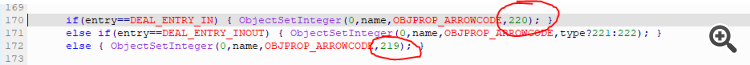 в голой проге, без добавлений каких либо сторонних файлов, вы совершаете сделку, у вас на графике показываются мелкие стрелки показывающие где вход и где вы вышли из сделки, на графике появляются стандартные стрелочки программы, но они мелкие шо пипец.