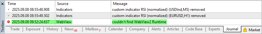 Как я уже отмечал, хотя декстопный MetaTrader 5 автоматически устанавливает WebView2 в фоновом режиме, мне пришлось переустанавливать Microsoft Edge WebView2 на новом ноутбуке Windows 11.