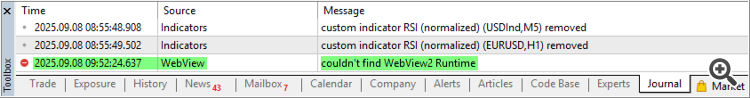 Если нет веб вью или с ней какая-то ошибка - то лучше переустановить. Так как без этой штуки сложно получить отчет из Метатрейдера и возникают разные ошибки при просмотре страниц в браузерах.