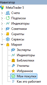 После чего ваш индикатор будет доступен в разделе Маркет - Мои покупки: