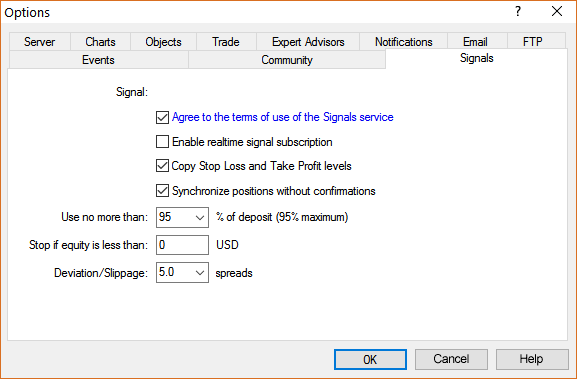 Итак, после синхронизации вашей подписки на сигналы с вашим MQL5 VPS, вкладка MT5 >> Инструменты >> Настройки >> Сигналы должна выглядеть следующим образом: