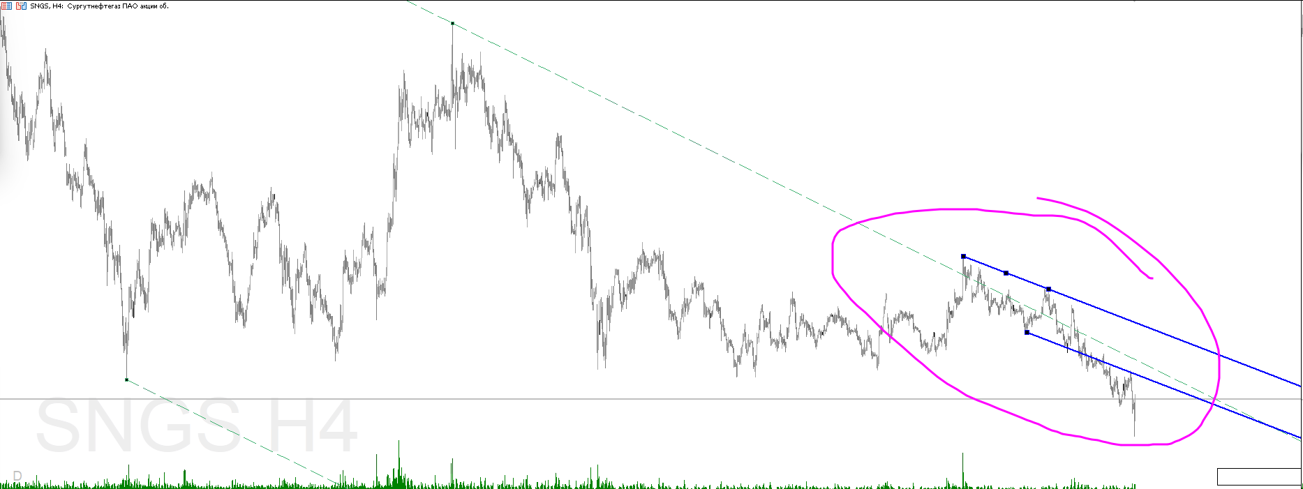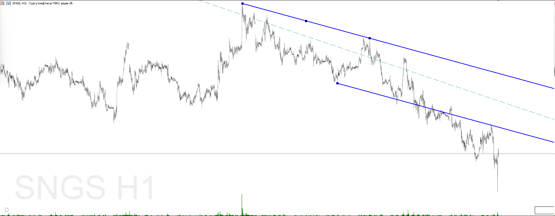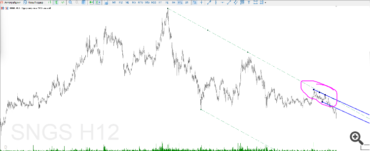 Простой пример - 2 канала, зеленый построен на D1 с выравниваем точек на H1. Синий построен на H1. Теперь меняем таймфреймы (указан на картинке) и "чешем репу" на предмет как интерпретировать.