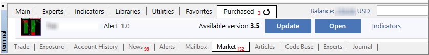 2.2. Открываю вкладку Маркет в МТ5, и загружаю или обновляю продукты:
