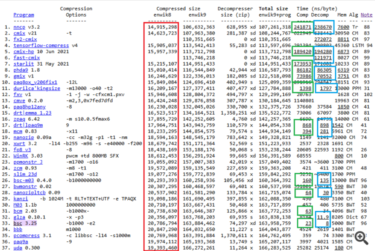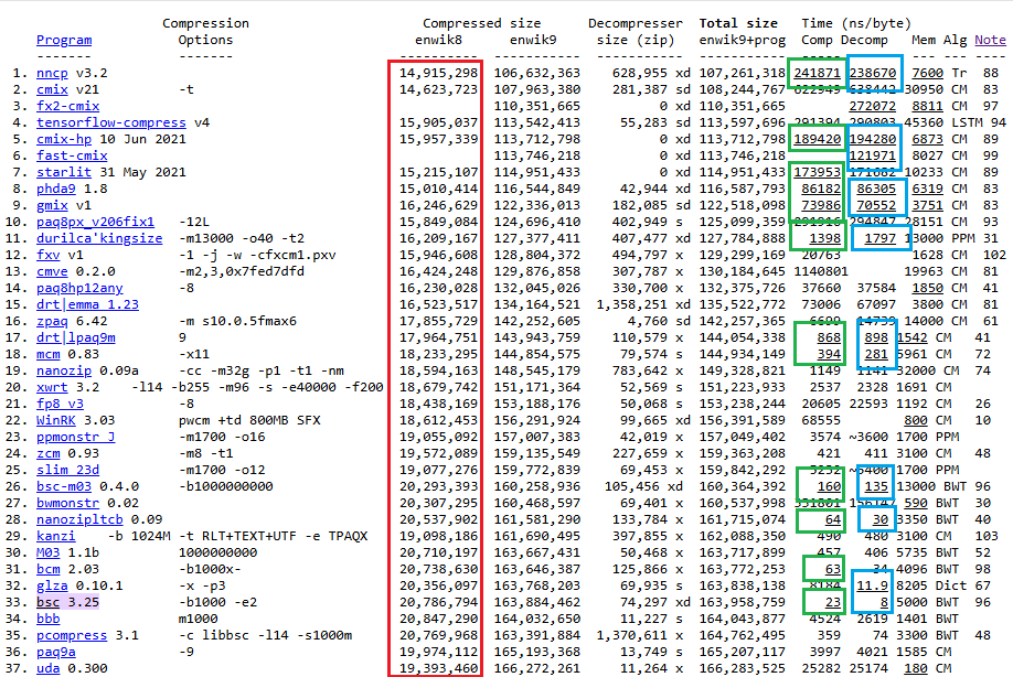 Зеленый - улучшение показателя скорости сжатия. Синий - разжатия.