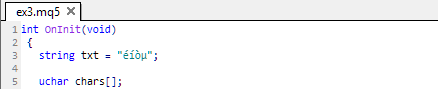 Но если вставить в другом редакторе, например, в форумном, то получится "éíòµ". Отсюда их можно скопировать повторно и вставить в MetaEditor.