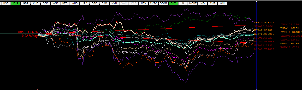 всё гораздо проще : всё выражается по отношению к USD и уносится в логарифмы.