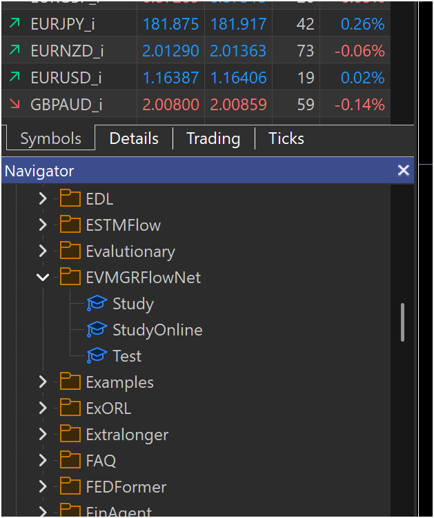 Название папок соответствует моделям. К данной статье "MQL5\Experts\EVMGRFlowNet\"