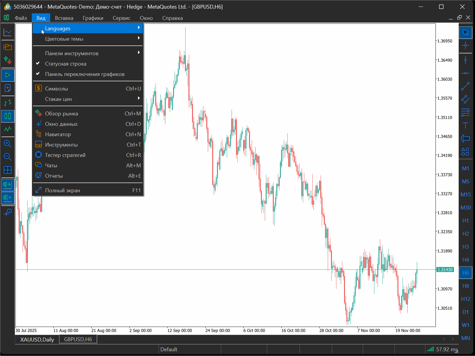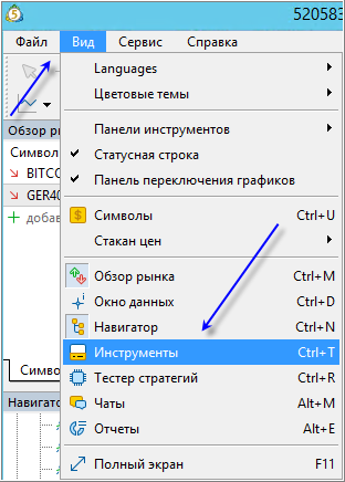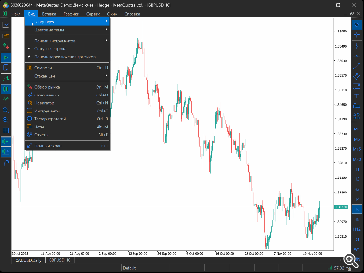 Настройки просмотра MT5