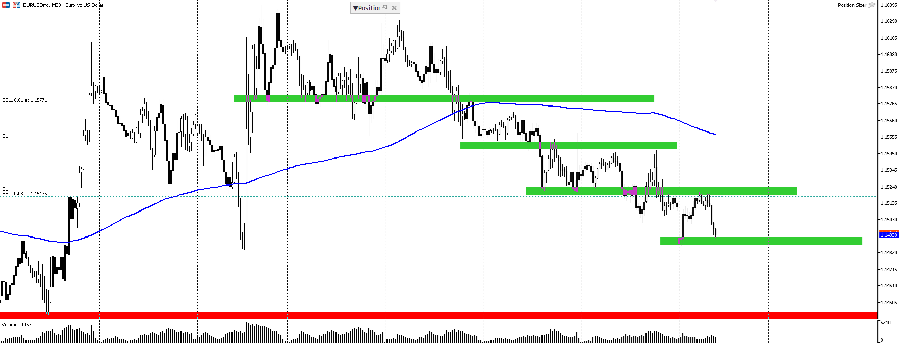 Сегодня интересная картина выходит по евро на графике М15, так как у нас есть неплохой импульс вверх, который ломает нисходящую тенденцию и вверху есть цель для захода в рынок, то есть площадка продавцов за которой будут находиться их стопы это уровень 1.15206 и за ними можно будет как раз нацелиться.