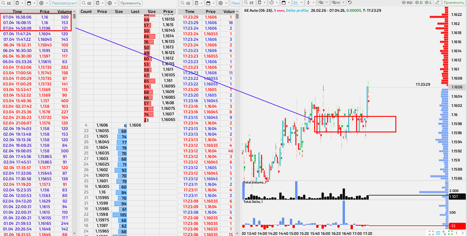 Привет, Рена.) Вот должно было, а получилось выше 1.16. На амеровском примаркете и в начале их сессии набирали покупки вот в этом диапазоне, после чего цена пошла вверх. Такой способ торговли - это работа, здесь надо бдить и не бдеть, работа тяжелая, поэтому предпочитаю торговать по отчетам, но все равно для входа в сделку использую ленту и стакан, потому как другого способа в природе нет, чтобы войти в то же евро со стопом около десяти пип. Можно торговать внутри дня таким способом, также другого нет, не придумали и не придумают никогда.