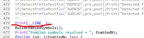 3) После перенумерации номеров строк В ЛОГАХ – перед возвращением кода в MetaEditor -->> обязательно удаляем номера строк В НАЧАЛЕ строк (чтобы компилятор кода не ругался на пустые числа в начале строк):