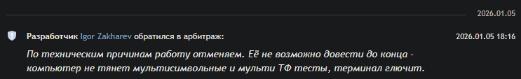 Второй случай, только что произошедший на праздники, сделал на 99% проект скринера, была затыка связанная с отображением кое-чего на графике в момент интеграции Blend2D в МТ5 ещё до НГ 2026, чуть подождали апдейтов и она прошла.