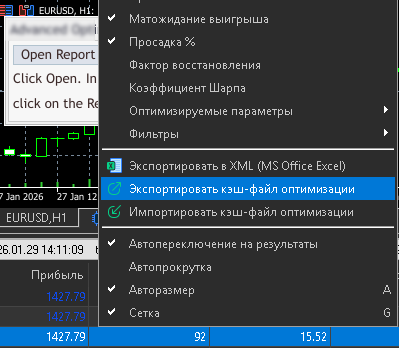 Если после проведения оптимизации закрыть терминал и открыть, выбрать эксперт и дату оптимизации, то после этого не работает экспорт opt файлов - просто ничего не происходит при клике по этому пункту.