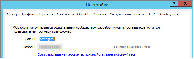 - или форумный логин в Community tab (вкладка Сообщество в Метатрейдере)?