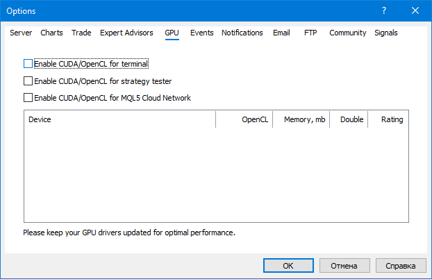 Ну лог и сообщает об отсутствии OpenCL для GPU. Всё правильно. Вероятно, не стоит фирменный драйвер GPU, реализующий OpenCL. А эмулированный для CPU не устраивает MT5.