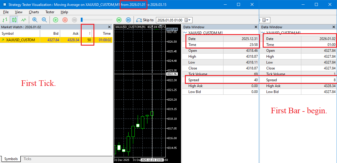 b5686, на нулевом баре в режиме Тестера по реальным тикам происходит заглядывание в будущее: становится известно, какой БУДЕТ минимальный спред.