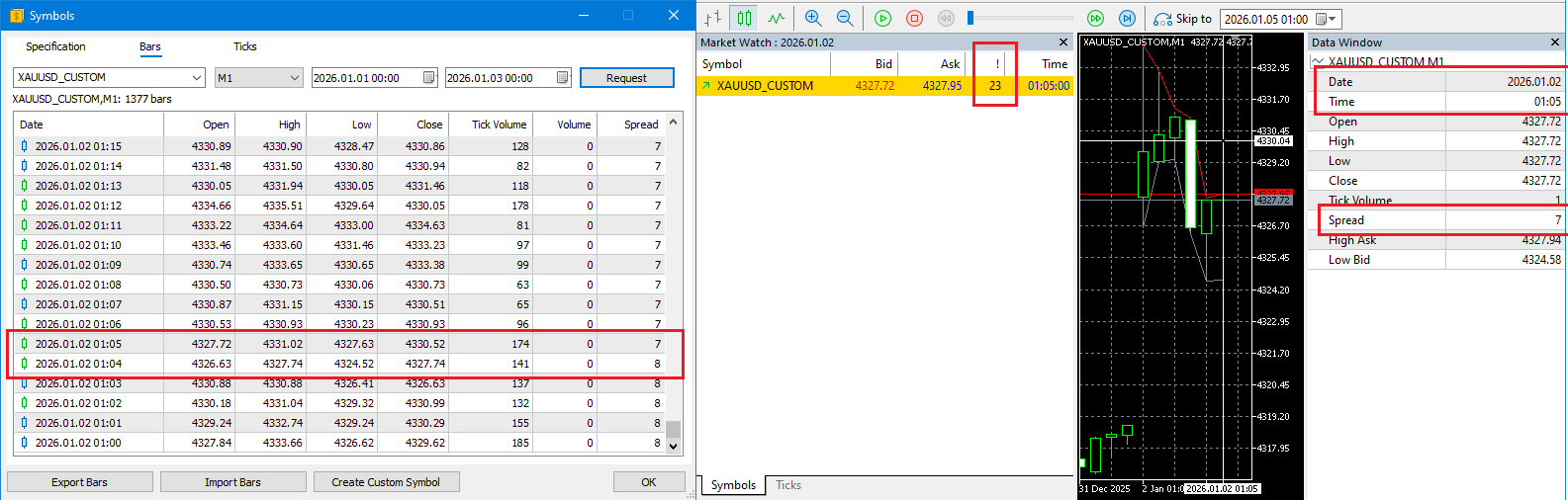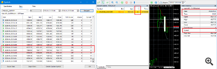 Чтобы не было расхождений баровой истории и тиковой, тестировал и на кастомных символах. Поведение повторяется.
