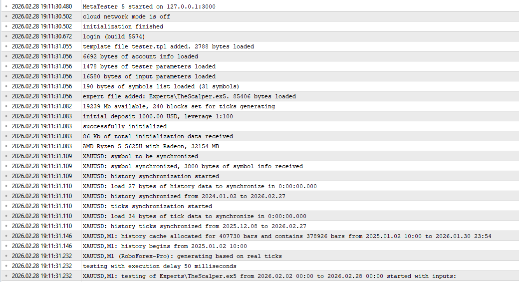 Сделал третий тест с вышеуказанными параметрами, но только НЕ НА ДРЕВНЕЙ ИСТОРИИ, а на периоде с 2025 по 2026 год. Режим генерации тиков НА РЕАЛЬНЫХ ТИКАХ.