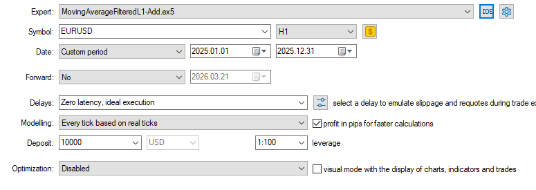 Параметры тестирования с фильтром закрытия сделок L1 Close Filter: