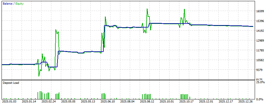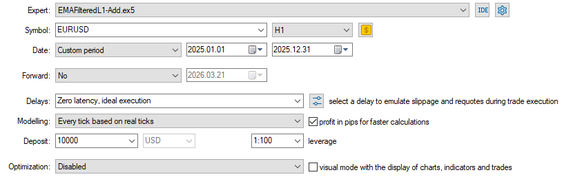 Следует иметь ввиду, что эти тесты были на трендовом рынке EURUSD за 2025 г (H1), для других валютных пар и периодов тестирования результаты будут другими. Отметим, что во всех примерах использовалось фиксированное значение параметра регуляризации lambda=0.2*lambda_max, он регулирует характер трендового разложения (можно контролировать визульно с помощью индикаторов из #13).