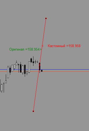 При time0 - time0 % persec и близкой к вертикали линии, пользовательская выдаёт значения цены такие же как ObjectGetValueByTime