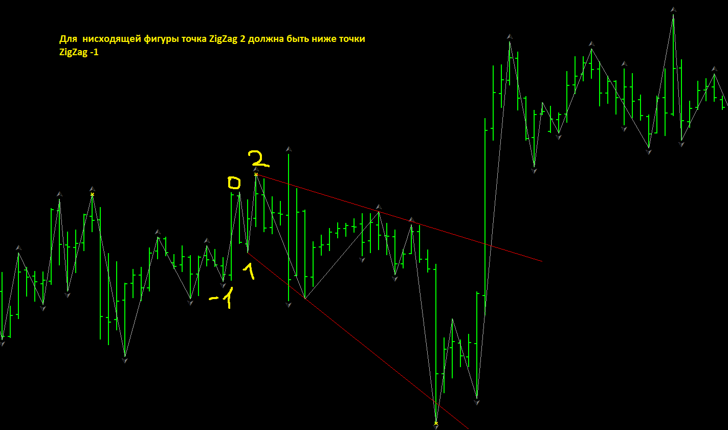 Требуется внести небольшое дополнительное условие в работу индикатора. Индикатор отправляет сигнал при нахождении фигуры, необходимо добавить дополнительный фильтр, чтобы избежать большого количества ложных срабатываний. Подробнее на скриншотах. Возможно, в процессе тестирования придется добавить еще фильтр/фильтры.
