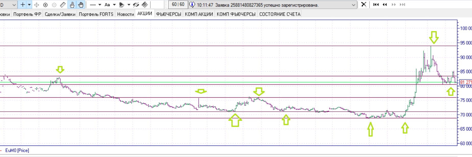 # Будет настройках возможность колебание например в канале цен, определенных пунктов: EURUSD хай 1.15660 и хай 1.156657 и лоу 1.15662 и между ними не более 5 пунктов. Если мы укажем колебание в сторону плюс и минус 5 пунктов то он будет рисовать тех цен которые пересеклись в этом диапазоне но не более. Настройки плюс и минус должны быть отдельно, чтобы могли написать минус 5 а плюс 0. Будет колебание считаться от первый цены здесь на примере был цена EURUSD 1.15660.