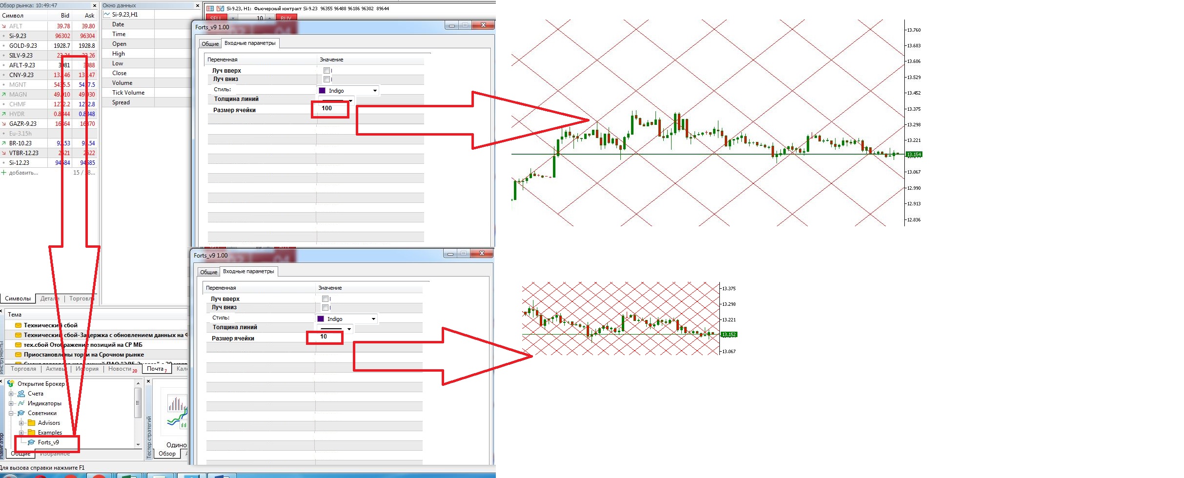 4.5. Размер ячейки. Отображает размер ячеек сетки ганна. Пример 2.