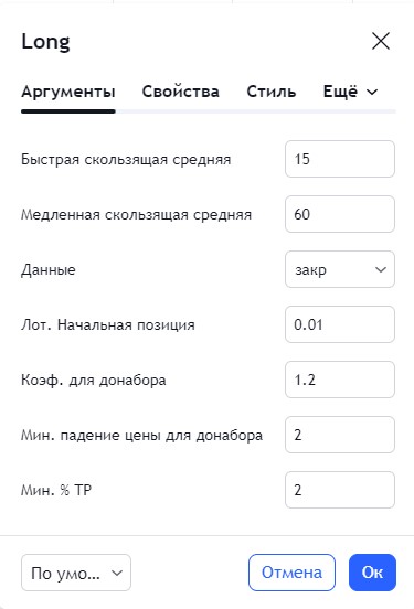 CloseLong = crossunder (FastEMA, SlowEMA) И закрытие свечи > TPPriceL