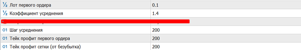 Начало с двойного (считается нулевым), на следующем шаге сетки в любую сторону закрывается профитный ордер и открывается новая пара; таким образом: либо с одного края сетки, либо с двух всегда остаётся двойной ордер; при перевороте позиций открывается тройной ордер одинакового объёма (два ордера в сторону тренда и один в обратную) : расстояние профитов рассчитывается от крайнего двойного (против тренда), а после