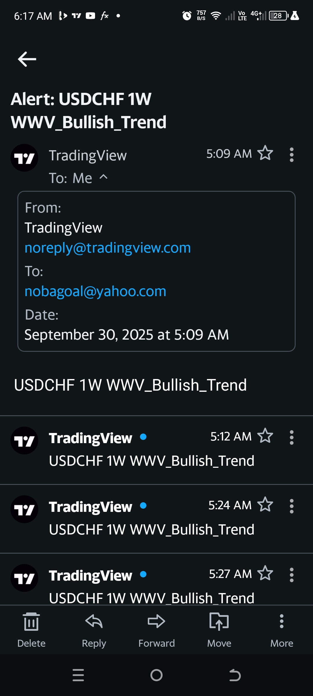 (e) The alerts must have same format as normal tradingview email alert..same title, email body as per sample to be provided. See attached screenshot of sample. Title has Alert: followed by text, body of email is similar to title except without the word Alert. Maintain same sender. All is normal text format