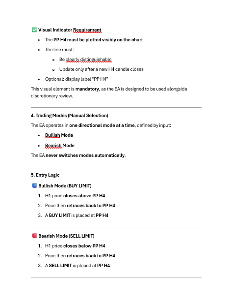 - The PP H4 must be plotted visibly on the chart
