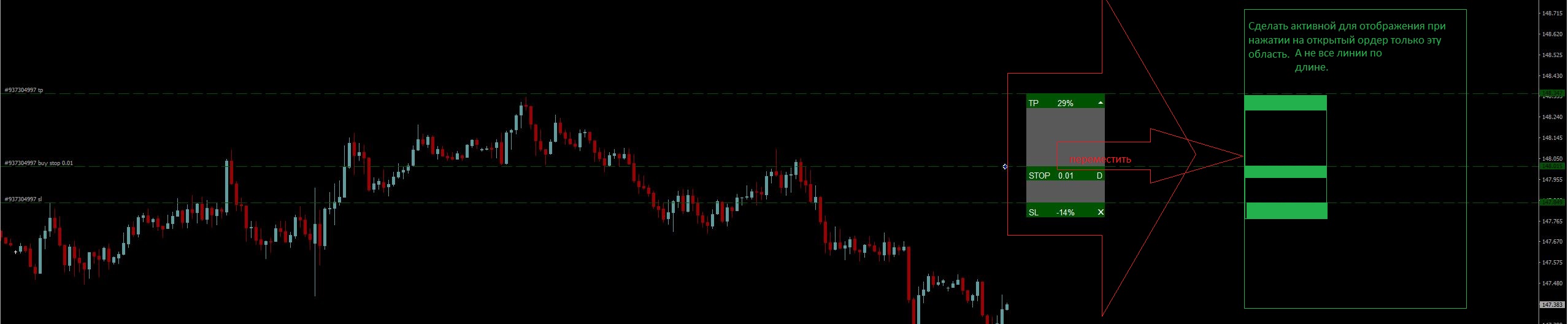 Its these orange SL/TP lines that appear when i click on empty areas of the chart