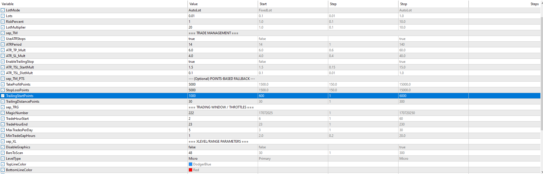 This settings for brokers with XAUUSD 3 digits, add 0 for TP,SL and TSL inputs