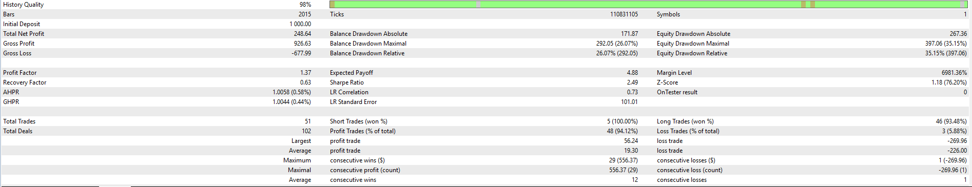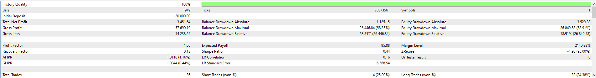 Based on the 4HTF settings that you mentioned this is my result with Exness broker 3 digits