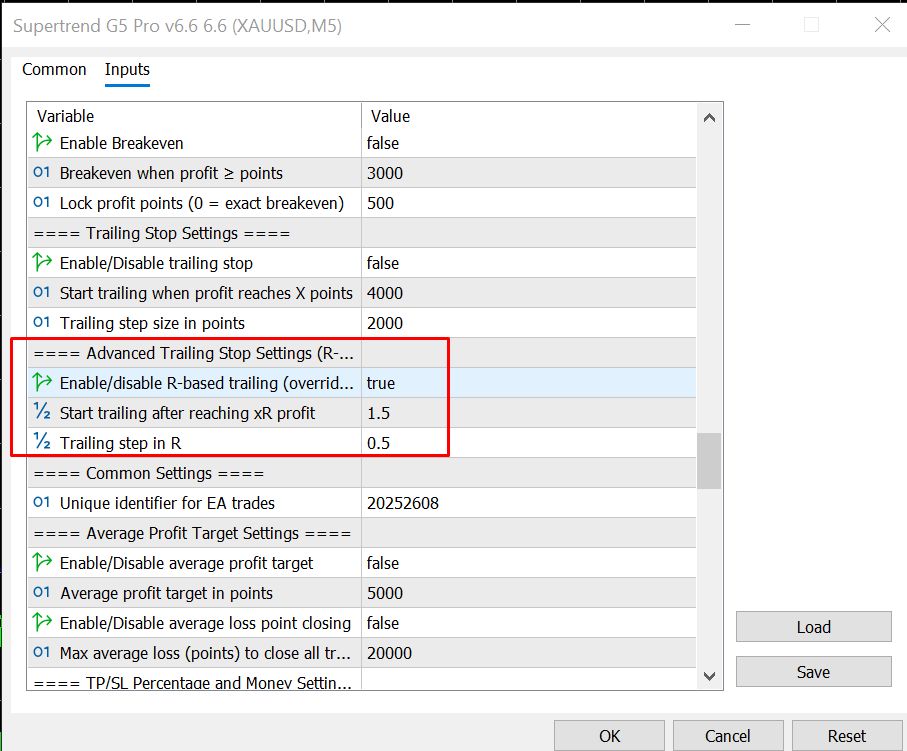- Added Advanced R-based Adaptive Trailing Stop, allowing trailing to start at a defined R multiple and move in configurable R steps